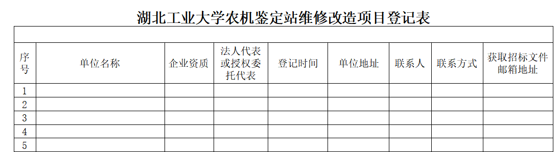附件:湖北工业大学农机鉴定站维修改造项目登记表