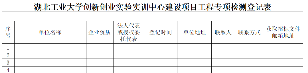 附件:湖北工业大学创新创业实验实训中心建设项目工程专项检测登记表