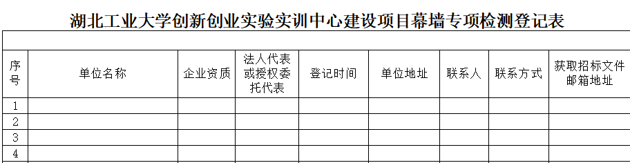 请将以下材料电子版在报名时间内发送至邮箱hgdjjc2023@163.com。邮件主题备注湖北工业大学创新创业实验实训中心建设项目幕墙专项检测项目。
