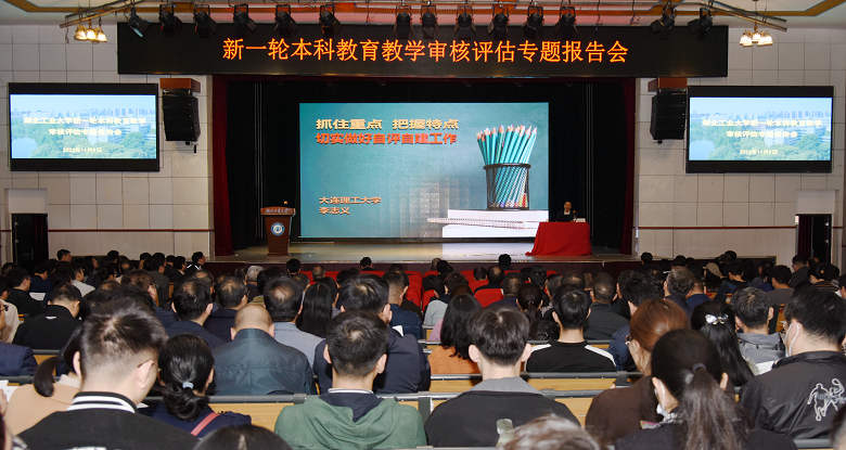 为全面深刻把握新一轮本科教育教学审核评估思想理念,不断提升全体教职员工对新一轮审核评估精髓要义理解和把握,积极推进迎评促建工作。11月9日下午,邀请国家督学、国家教学名师、大连理工大学原副校长李志义教授来校作专题辅导报告。校党委副书记、校长冯征及全体在家校领导出席大会,学校机关各部门、各教学单位、相关直属单位副处级及以上干部、各教学单位系(部)主任、专业及课程负责人、教师代表及高等教育质量国家数据填报人员共570余人参加学习,大会由校党委常委、副校长龚发云主持。