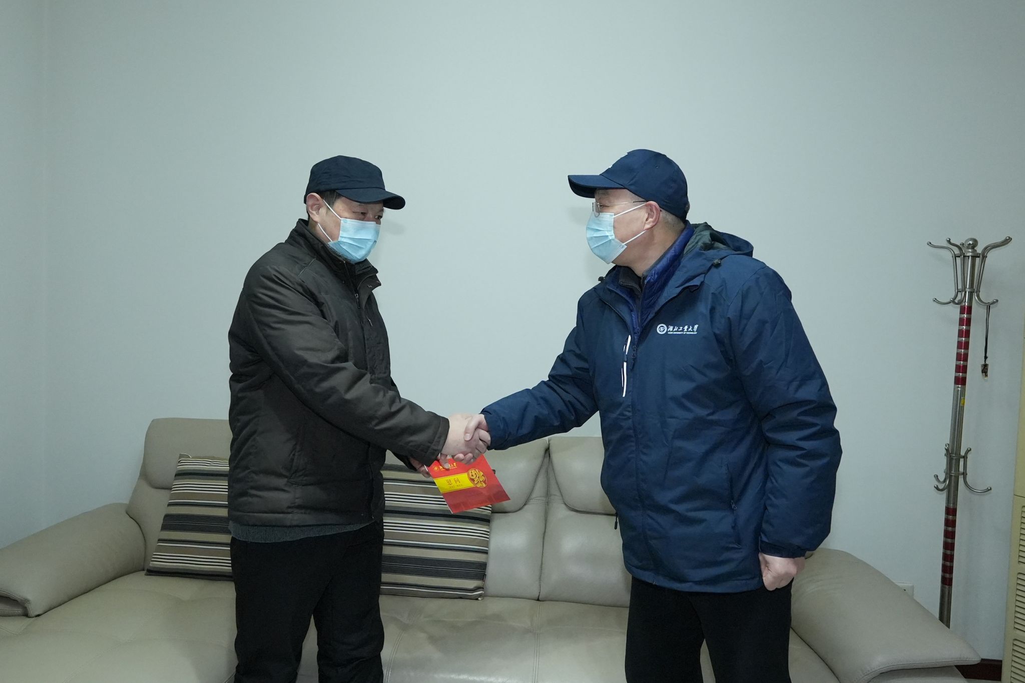 1月18日至22日,校党委书记彭育园、校长冯征,校党委常委、组织部长桂丽带队深入基层一线,走访了机械工程学院、土木建筑与环境学院、马克思主义学院、保卫处、校医院、学生宿舍管理中心、饮食服务管理中心、研究生公寓工地、湖工社区等,向坚守岗位的党员代表和一线教职工送上了节日的问候和新春的祝福。