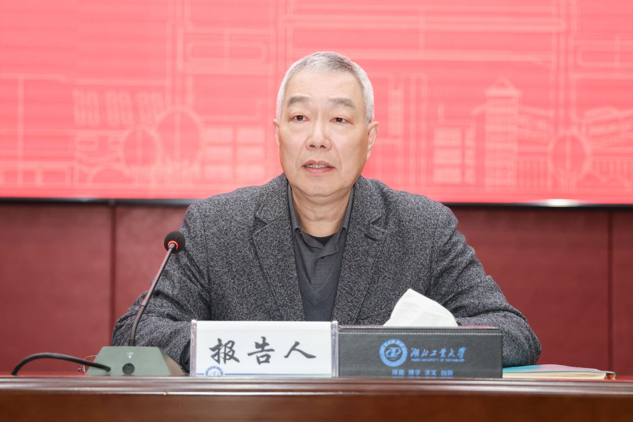 他指出,在学校党委的坚强领导下,2023年全体湖工大人拼搏奋进,以人才队伍建设为突破口,一体推进教育科技人才协同发展,找目标、找差距、找路径、找状态,积极构建彰显学校特色和优势的改革发展新格局,学校各项事业持续健康快速发展。2024年学校工作的主题是“学科建设年”,将重点推进8个方面的工作,一是以高质量党建为统领,推进党建与事业发展深度融合;二是以高水平学科建设为主线,加快形成办学核心竞争力;三是以立德树人为根本,着力完善高质量人才培养体系;四是以人才队伍建设为关键,继续打造高水平师资队伍;五是以科技创新为动力,不断提升服务经济社会实效;六是以开放创新办学为助力,大力拓展学校发展空间;七是以高效能治理为支撑,深入推进治理体系和治理能力现代化;八是以营造高品质育人环境为目标,持续加强和改善民生。