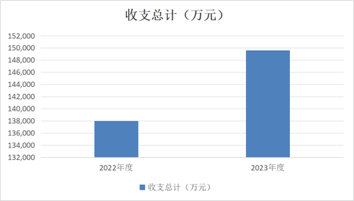 2023年度收、支总计均为149,617.19万元。与2022年度相比,收、支总计各增加11,659.35万元,增长8.5%,主要原因是调整后年初结转和结余比上年有所增加,本年支出也较上年有所增加。