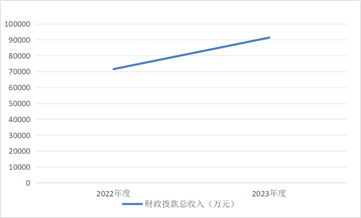 2023年度财政拨款收、支总计均为91,326.06万元。与2022年度相比,财政拨款收、支总计各增加19,800.47万元,增长27.7%。主要原因是一般公共预算财政拨款收入与上年相比有所增加。